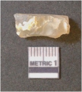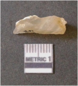 | Description / विवरण | It is chalcedony flake, translucent in appearance. The piece shows sharp pointed ends and flake scars on the surface as a result of flaking. The piece shows a bulb of percussion. |
