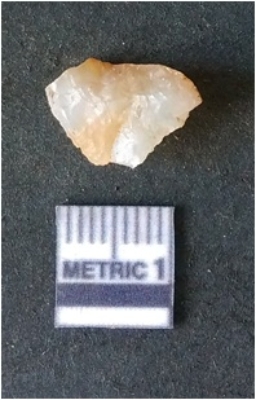 | Description / विवरण | It is chalcedony flake. Translucent in appurtenance. The piece is shows sharp pointed ends and flake scars on the surface. As a result of flaking. |