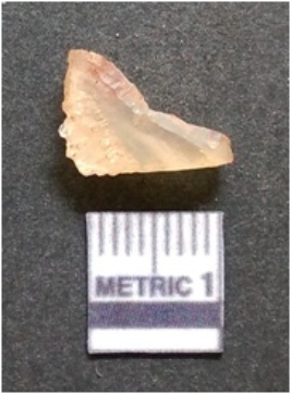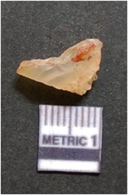 | Description / विवरण | It is chalcedony flake, translucent in appearance. The piece shows sharp pointed ends and flake scars on the surface as a result of flaking. The piece shows a bulb of percussion. |