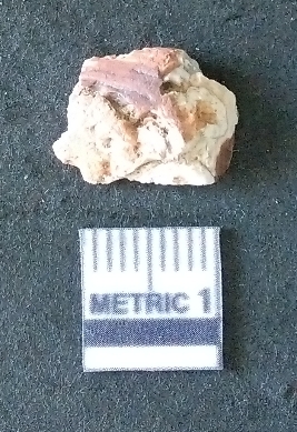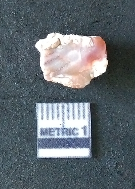 | Description / विवरण | The carnelian flake is reddish in color, with sharp flakes edges and a small bulb of percussion owing to knapping activity. |
