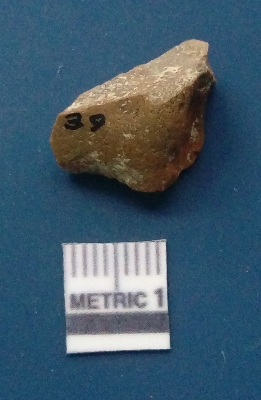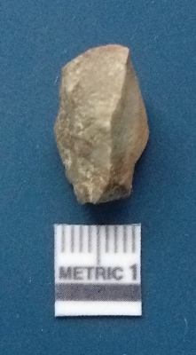 | Description / विवरण | The chert piece is dark in color, with a prominent bulb of percussion and sharp flaked edges. The piece is a part of lithic debitage or raw material for lithic knapping. The piece shows clear ripple marks and bulb of percussion. |