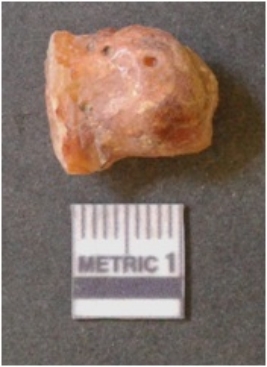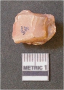 | Description / विवरण | It is chalcedony flake, translucent in appearance. The piece shows sharp pointed ends and flake scars on the surface as a result of flaking. The piece shows a bulb of percussion. |