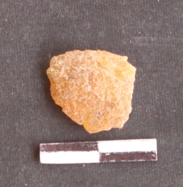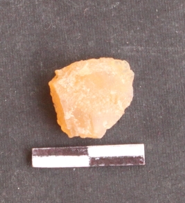 | Description / विवरण | It s a quartz fragment. It is pattinated with ferrous impurities on the cortex. Flake scar on the surface. |