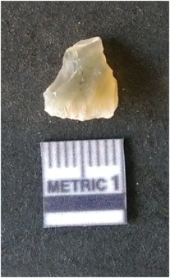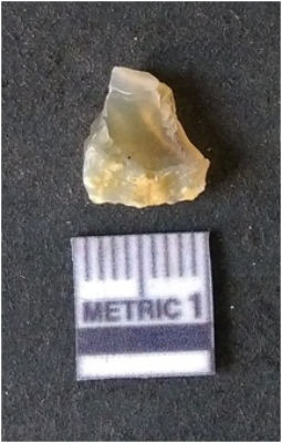 | Description / विवरण | It is chalcedony flake. Translucent in appurtenance. The piece is shows sharp pointed ends and flake scars on the surface. As a result of flaking. |