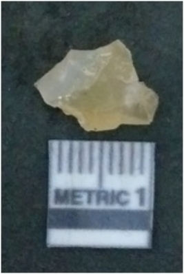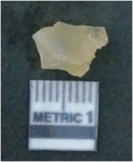 | Description / विवरण | It is chalcedony flake, translucent in appearance. The piece shows sharp pointed ends and flake scars on the surface as a result of flaking. The piece shows a bulb of percussion. |