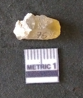 | Description / विवरण | The chalcedony flake is pale yellow in color. Translucent in appurtenance. The piece is shows sharp pointed ends and flake scars on the surface. As a result of flaking. |