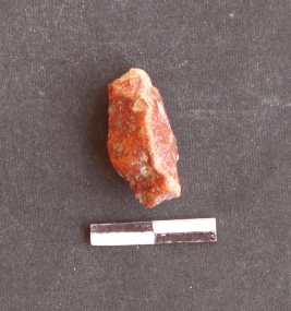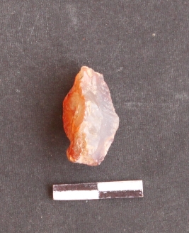 | Description / विवरण | It s a chalcedony fragment, with a bulb of percussion on the ventral side. Cortex on one end. With lots of ferrous impurities on cortex which shows resemblance to carnelian. |