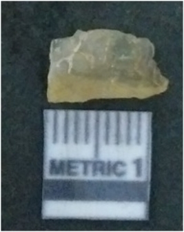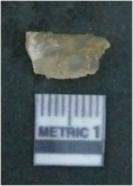 | Description / विवरण | It is chalcedony flake, translucent in appearance. The piece shows sharp pointed ends and flake scars on the surface as a result of flaking. The piece shows a bulb of percussion. |