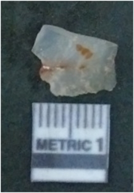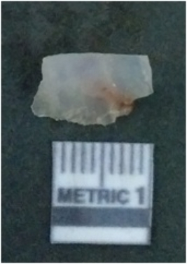 | Description / विवरण | It is chalcedony flake, translucent in appearance. The piece shows sharp pointed ends and flake scars on the surface as a result of flaking. The piece shows a bulb of percussion. |