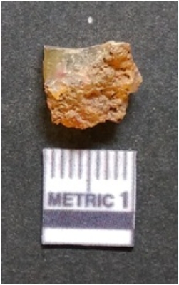 | Description / विवरण | It is chalcedony flake, translucent in appearance. The piece shows sharp pointed ends and flake scars on the surface as a result of flaking. The piece shows a bulb of percussion. |