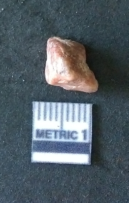| Description / विवरण | The chert piece is dark in color, with a prominent bulb of percussion and sharp flaked edges. The piece is a part of lithic debitage or raw material for lithic knapping. |