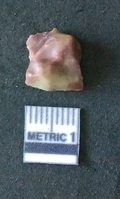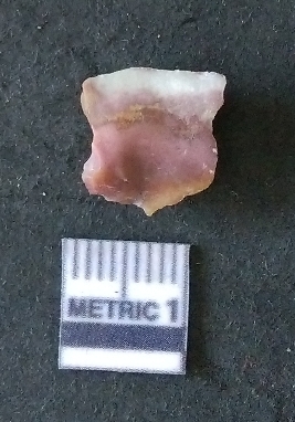 | Description / विवरण | The chert piece is dark in color, with a prominent bulb of percussion and sharp flaked edges. The piece is a part of lithic debitage or raw material for lithic knapping. |