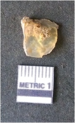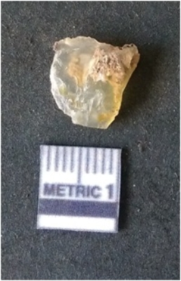 | Description / विवरण | It is chalcedony flake. Translucent in appurtenance. The piece is shows sharp pointed ends and flake scars on the surface. As a result of flaking. |