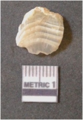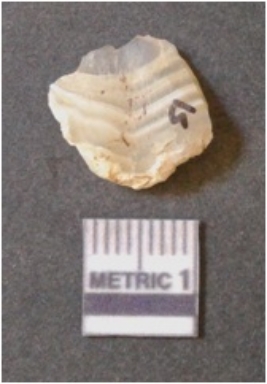 | Description / विवरण | The banded agate piece is crystalline in nature, with a smooth fracture pattern and visible bands on the flaked sides. The piece is pale in color and has sharp flaked ends. |