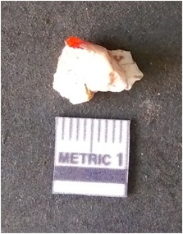| Description / विवरण | It is chalcedony flake. Translucent in appurtenance. The piece is shows sharp pointed ends and flake scars on the surface. As a result of flaking. |