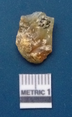 | Description / विवरण | The chert piece is dark in color, with a prominent bulb of percussion and sharp flaked edges. The piece is a part of lithic debitage or raw material for lithic knapping. The piece shows clear ripple marks and bulb of percussion. |
