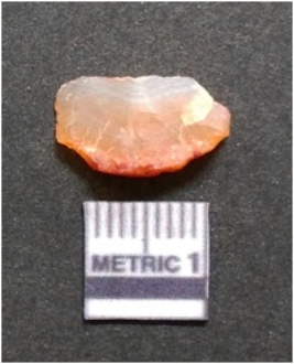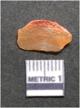 | Description / विवरण | It is chalcedony flake, translucent in appearance. The piece shows sharp pointed ends and flake scars on the surface as a result of flaking. The piece shows a bulb of percussion. |