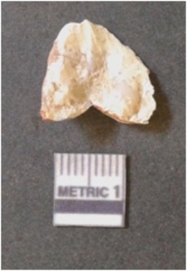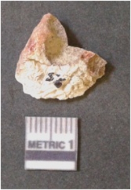 | Description / विवरण | The quartz flake has sharp flaked edges and pointed ends as a result of flaking. The piece is semi-transparent in nature with irregular fracture pattern. The piece is roughly triangular in shape and has a prominent bulb of percussion. |