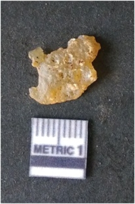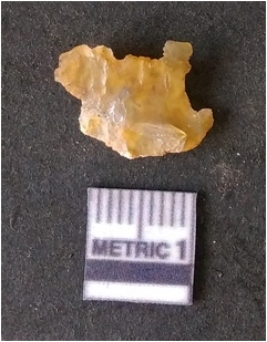 | Description / विवरण | It is chalcedony flake. Translucent in appurtenance. The piece is shows sharp pointed ends and flake scars on the surface. As a result of flaking. |