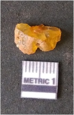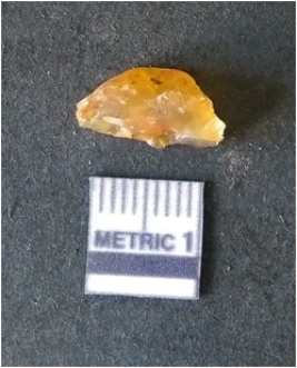 | Description / विवरण | It is chalcedony flake. Translucent in appurtenance. The piece is shows sharp pointed ends and flake scars on the surface. As a result of flaking. |
