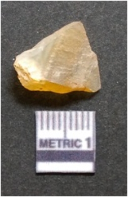 | Description / विवरण | It is chalcedony flake, translucent in appearance. The piece shows sharp pointed ends and flake scars on the surface as a result of flaking. The piece shows a bulb of percussion. |