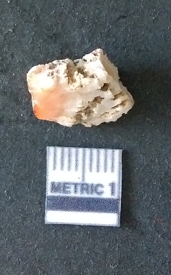 | Description / विवरण | The quartz fragment shows prominent flaks scars and sharp flaked ends as a result of flaking. The piece is translucent white and shows cryptocrystalline matrix. |