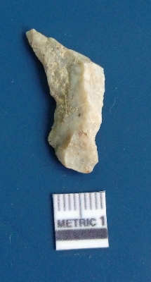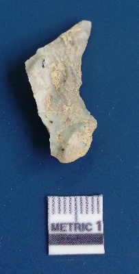 | Description / विवरण | The chert piece is dark in color, with a prominent bulb of percussion and sharp flaked edges. The piece is a part of lithic debitage or raw material for lithic knapping. The piece shows clear ripple marks and bulb of percussion. |