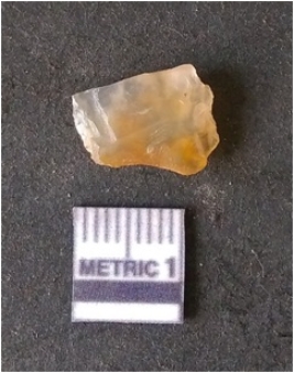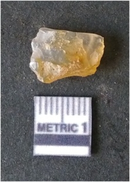 | Description / विवरण | It is chalcedony flake. Translucent in appurtenance. The piece is shows sharp pointed ends and flake scars on the surface. As a result of flaking. |