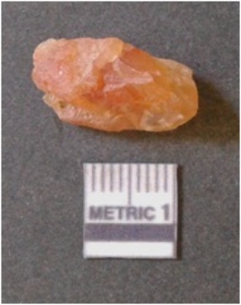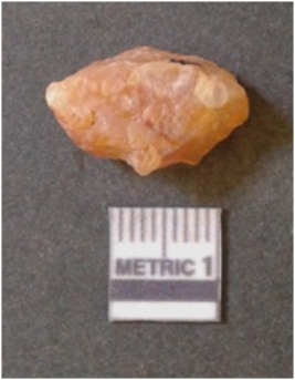 | Description / विवरण | It is chalcedony flake, translucent in appearance. The piece shows sharp pointed ends and flake scars on the surface as a result of flaking. The piece shows a bulb of percussion. |