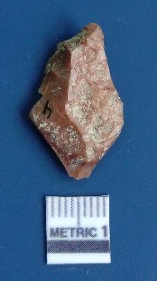 | Description / विवरण | The chert piece is dark in color, with a prominent bulb of percussion and sharp flaked edges. The piece is a part of lithic debitage or raw material for lithic knapping. The piece shows clear ripple marks and bulb of percussion. |