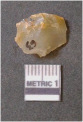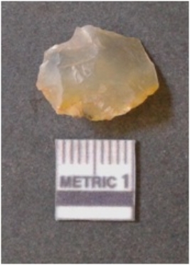 | Description / विवरण | The agate piece is translucent in appurtenance, with angular flaked edges and a bulb of percussion. The piece shows flake scars on the surface. |