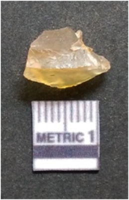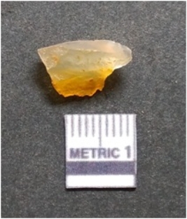 | Description / विवरण | It is chalcedony flake, translucent in appearance. The piece shows sharp pointed ends and flake scars on the surface as a result of flaking. The piece shows a bulb of percussion. |