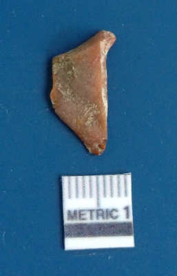 | Description / विवरण | The chert piece is dark in color, with a prominent bulb of percussion and sharp flaked edges. The piece is a part of lithic debitage or raw material for lithic knapping. The piece shows clear ripple marks and bulb of percussion. |