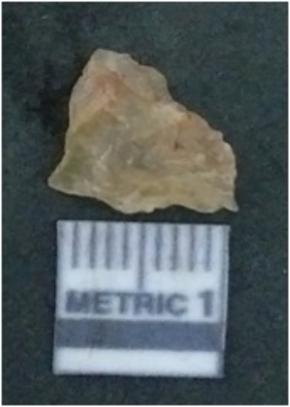 | Description / विवरण | It is chalcedony flake, translucent in appearance. The piece shows sharp pointed ends and flake scars on the surface as a result of flaking. The piece shows a bulb of percussion. |