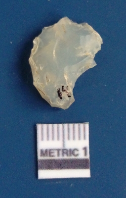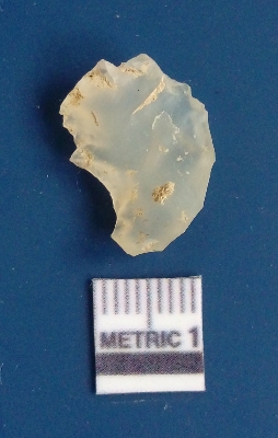 | Description / विवरण | It is chalcedony flake, translucent in appearance. The piece shows sharp pointed ends and flake scars on the surface as a result of flaking. The piece shows a bulb of percussion. |