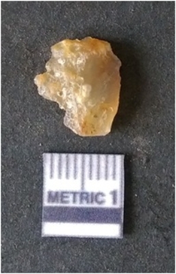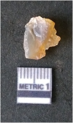 | Description / विवरण | It is chalcedony flake. Translucent in appurtenance. The piece is shows sharp pointed ends and flake scars on the surface. As a result of flaking. |