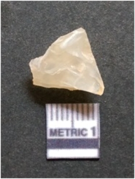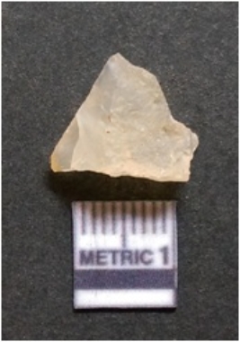 | Description / विवरण | It is chalcedony flake, translucent in appearance. The piece shows sharp pointed ends and flake scars on the surface as a result of flaking. The piece shows a bulb of percussion. |