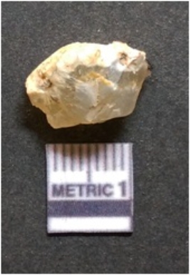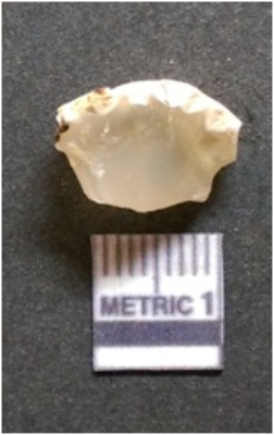 | Description / विवरण | It is chalcedony flake, translucent in appearance. The piece shows sharp pointed ends and flake scars on the surface as a result of flaking. The piece shows a bulb of percussion. |