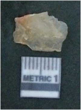 | Description / विवरण | It is chalcedony flake, translucent in appearance. The piece shows sharp pointed ends and flake scars on the surface as a result of flaking. The piece shows a bulb of percussion. |