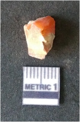| Description / विवरण | It is chalcedony flake. Translucent in appurtenance. The piece is shows sharp pointed ends and flake scars on the surface. As a result of flaking. |