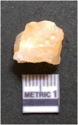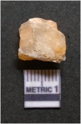 | Description / विवरण | It is chalcedony flake, translucent in appearance. The piece shows sharp pointed ends and flake scars on the surface as a result of flaking. The piece shows a bulb of percussion. |