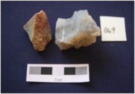 | Description / विवरण | Cores with flake scars, made on chalcedony and chert, prepared platform along one end, negative bulb on the flake scars. |