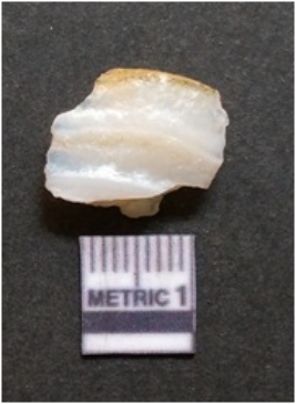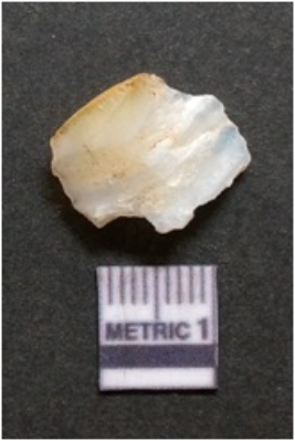 | Description / विवरण | It is chalcedony flake, translucent in appearance. The piece shows sharp pointed ends and flake scars on the surface as a result of flaking. The piece shows a bulb of percussion. |