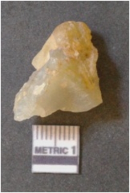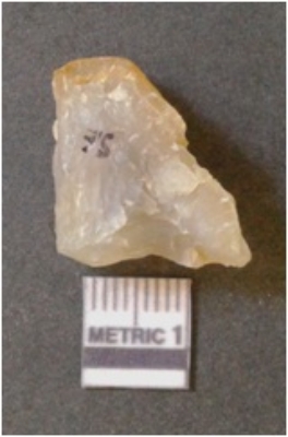 | Description / विवरण | It is chalcedony flake, translucent in appearance. The piece shows sharp pointed ends and flake scars on the surface as a result of flaking. The piece shows a bulb of percussion. |