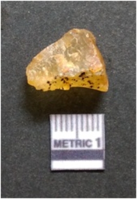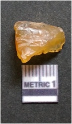 | Description / विवरण | It is chalcedony flake, translucent in appearance. The piece shows sharp pointed ends and flake scars on the surface as a result of flaking. The piece shows a bulb of percussion. |