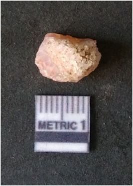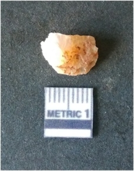| Description / विवरण | It is chalcedony flake. Translucent in appurtenance. The piece is shows sharp pointed ends and flake scars on the surface. As a result of flaking. |