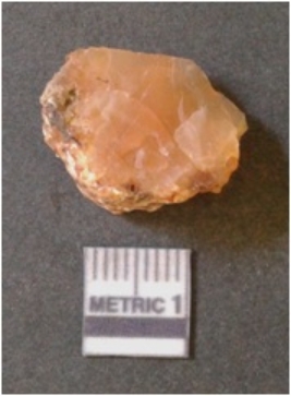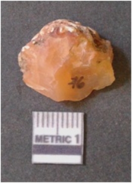 | Description / विवरण | The flake has irregular fracture pattern and sharp flaked edges as a result of lithic knapping activity. The piece is pale, with surfacial flake scars and a bulbous end. The quartz flake is rosy white in colour. |