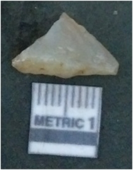 | Description / विवरण | It is chalcedony flake, translucent in appearance. The piece shows sharp pointed ends and flake scars on the surface as a result of flaking. The piece shows a bulb of percussion. |