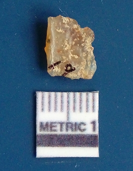 | Description / विवरण | It is chalcedony flake, translucent in appearance. The piece shows sharp pointed ends and flake scars on the surface as a result of flaking. The piece shows a bulb of percussion. |