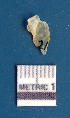 | Description / विवरण | It is chalcedony flake, translucent in appearance. The piece shows sharp pointed ends and flake scars on the surface as a result of flaking. The piece shows a bulb of percussion. |
